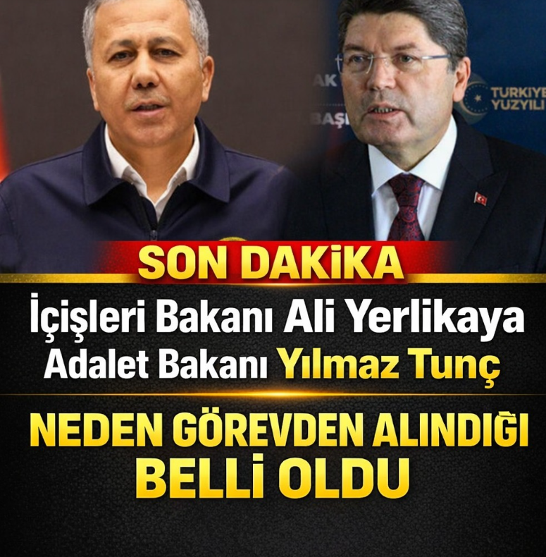 Cumhurbaşkanı Recep Tayyip Erdoğan'ın imzasıyla yayımlanan Resmi Gazete kararı ile İçişleri Bakanı Ali Yerlikaya görevinden alındı. Yerlikaya'nın yerine Erzurum Valisi Mustafa Çiftçi atandı.ALİ YERLİKAYA'DAN İLK AÇIKLAMAAtama kararlarının Resmi Gazete'de yayımlanmasının ardından Ali Yerlikaya'dan ilk açıklama geldi. Yerlikaya açıklamasında, "Ülkemizin huzur ve güvenliği için canla başla görev yapan İçişleri Ailemizin her bir ferdine ayrı ayrı yürekten teşekkür ediyorum" ifadelerini kullandı. Yerlikaya ayrıca Cumhurbaşkanı Recep Tayyip Erdoğan'a da şükranlarını sundu."CUMHURBAŞKANIMIZA ŞÜKRANLARIMI ARZ EDİYORUM"Yerlikaya'nın açıklamasının tamamı şöyle: "Cumhurbaşkanımız Sayın Recep Tayyip Erdoğan'ın tensip ve takdirleriyle 4 Haziran 2023 tarihinde başladığım İçişleri Bakanlığı görevimi kıymetli kardeşim Mustafa Çiftçi'ye devrediyorum. Kendisini tebrik ediyor, yeni görevinde başarılar diliyorum. Allah hayırlı uğurlu etsin.Bakanlığım süresince verdiği büyük desteklerinden dolayı Sayın Cumhurbaşkanımıza şükranlarımı arz ediyorum.Ülkemizin huzur ve güvenliği için canla başla görev yapan İçişleri Ailemizin her bir ferdine ayrı ayrı yürekten teşekkür ediyorum. Allah'a emanet olun." MUSTAFA ÇİFTÇİ KİMDİR?Mustafa Çiftçi, 1970 yılında Konya'nın Çumra ilçesinde doğmuştur. Türkiye'nin önde gelen bürokratlarından biri olan Çiftçi, kamu yönetimi alanındaki başarılı kariyeriyle dikkat çekmektedir. Ankara Üniversitesi Siyasal Bilgiler Fakültesi Kamu Yönetimi Bölümü'nden 1995 yılında mezun olmuştur.Eğitimini tamamladıktan sonra mülki idare amiri olarak çeşitli görevlerde bulunmuş, kaymakamlık ve vali yardımcılığı gibi önemli pozisyonlarda çalışmıştır. Boğazlıyan, Hilvan, Sürmene, Gürpınar ve Korgan gibi ilçelerde kaymakam olarak görev yapan Mustafa Çiftçi, ayrıca Çorum Valiliği görevini de üstlenmiştir.10 Ağustos 2023 tarihinde yayımlanan Cumhurbaşkanlığı Kararnamesi ile Erzurum Valisi olarak atanmıştır. Göreve geldiği günden bu yana Erzurum'da yürüttüğü çalışmalarla adından söz ettiren Vali Çiftçi, devlet hizmetinde tarafsız ve disiplinli tutumuyla tanınmaktadır. AKIN GÜRLEK KİMDİR? BİR KARİYERİN KRİTİK DURAKLARI1982 Nevşehir doğumlu olan Akın Gürlek, 2005 yılında Marmara Üniversitesi Hukuk Fakültesi'nden mezun oldu. Hakimlik kariyerinde hızla yükselen Gürlek, özellikle İstanbul'daki Ağır Ceza Mahkemesi başkanlıkları döneminde Türkiye'nin en çok konuştuğu isimlerden biri haline geldi.ÜLKE TARİHİNE GEÇEN KARARLARAkın Gürlek, birçok kritik davanın karar merciinde yer aldı:Selahattin Demirtaş: AİHM'in ihlal kararı öncesi "örgüt propagandası" suçundan hapis cezası vererek tahliyesini engelleyen karara imza attı.Canan Kaftancıoğlu: Sosyal medya paylaşımları nedeniyle 9 yıl 8 aylık hapis cezası veren mahkemenin başkanıydı.Enis Berberoğlu: Anayasa Mahkemesi'nin (AYM) "hak ihlali" kararını uygulamayarak yerel mahkemede direnen hakim olarak hafızalara kazındı.Hrant Dink Savası: Cinayetin "FETÖ hedefleri doğrultusunda işlendiğine" hükmeden kararı açıklayan heyetin başındaydı.Sözcü Gazetesi & ÇHD davaları: Gazeteci ve avukatlara yönelik hapis cezası kararlarıyla dikkat çekti.MİT TIR'ları davası sonrasında yurt dışına çıkan Cumhuriyet gazetesi eski Genel Yayın Yönetmeni Can Dündar'ı "kaçak" ilan etti ve gayrimenkullerine el koyma kararı verdiSon başsavcılık döneminde ise İBB'ye yönelik yolsuzluk operasyonları, Esenyurt Belediye Başkanı Ahmet Özer'in tutuklanması ve Ekrem İmamoğlu hakkındaki hukuki süreçlerle isminden söz ettirmeye devam etti.2 EKİM 2024'DEN BU YANA İSTANBUL'DA GÖREVLİYDİ1982 yılında Nevşehir'de doğan Akın Gürlek, Marmara Üniversitesi Hukuk Fakültesi'nden mezun oldu. Hakimlik kariyerine başladıktan sonra birçok ilde görev yaptı ancak ismini asıl olarak İstanbul 14. ve 37. Ağır Ceza Mahkemeleri Başkanlığı döneminde duyurdu. 2022 yılında Adalet Bakan Yardımcılığı görevine atanan Gürlek, 2 Ekim 2024'te İstanbul Cumhuriyet Başsavcısı olarak görev yapmaya başlamıştı. Gürlek son olarak kabine revizyonuyla Adalet Bakanlığı koltuğuna oturdu.Elif Gülşah Gürlek ile evli olan Akın Gürlek bir çocuk babasıdır.